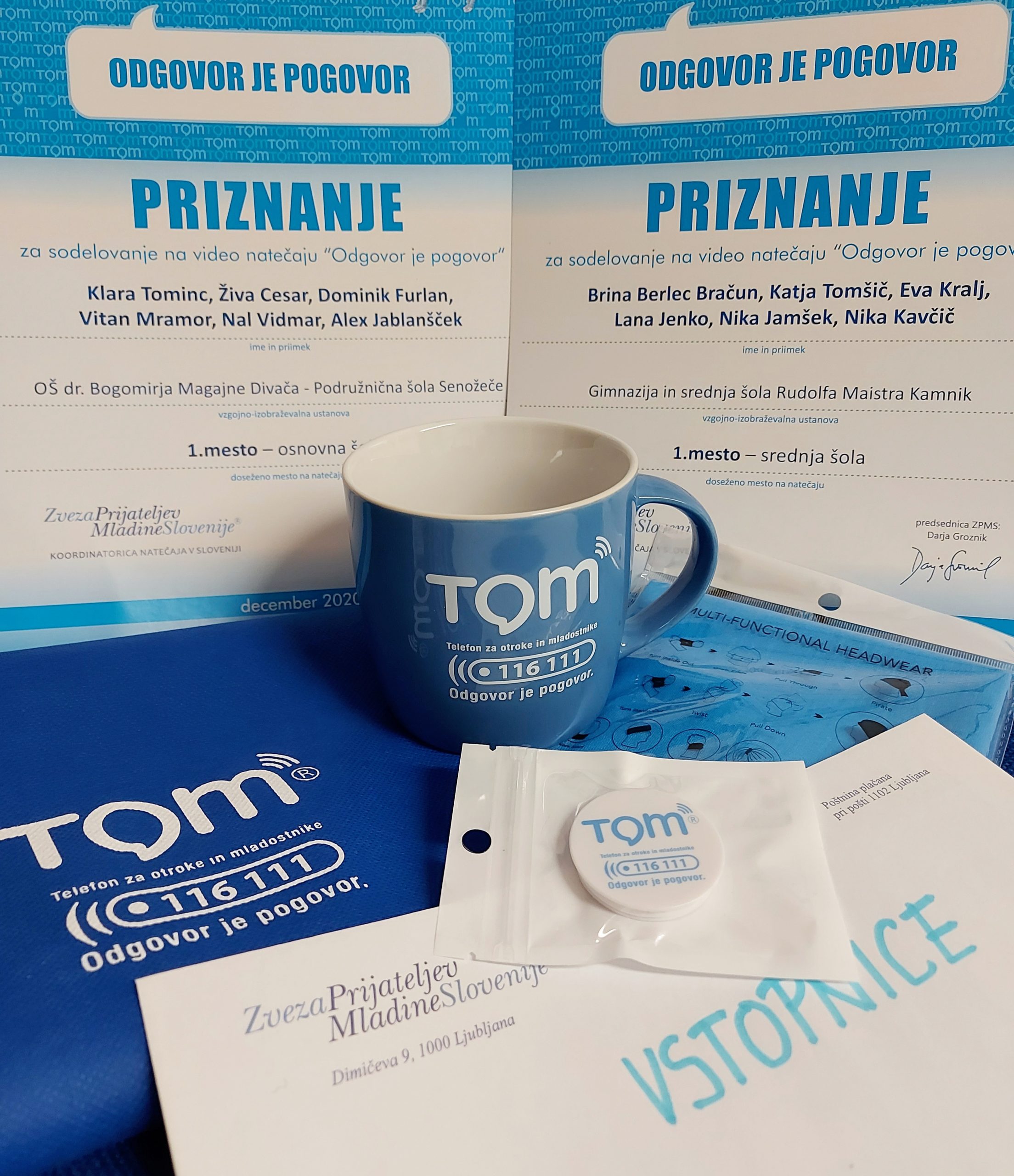 Ob 30 letnici delovanja programa TOM telefon® smo pri Zvezi prijateljev mladine Slovenije pripravili video natečaj »Odgovor je pogovor«, s katerim smo želeli vsem otrokom in mladostnikom predati sporočilo, da je v stiski ali dvomu najboljši odgovor – pogovor. V ta namen smo k sodelovanju povabili učence druge in tretje triade osnovne šole in srednješolce, da na kreativen način to sporočilo predajo svojim vrstnikom tudi sami.