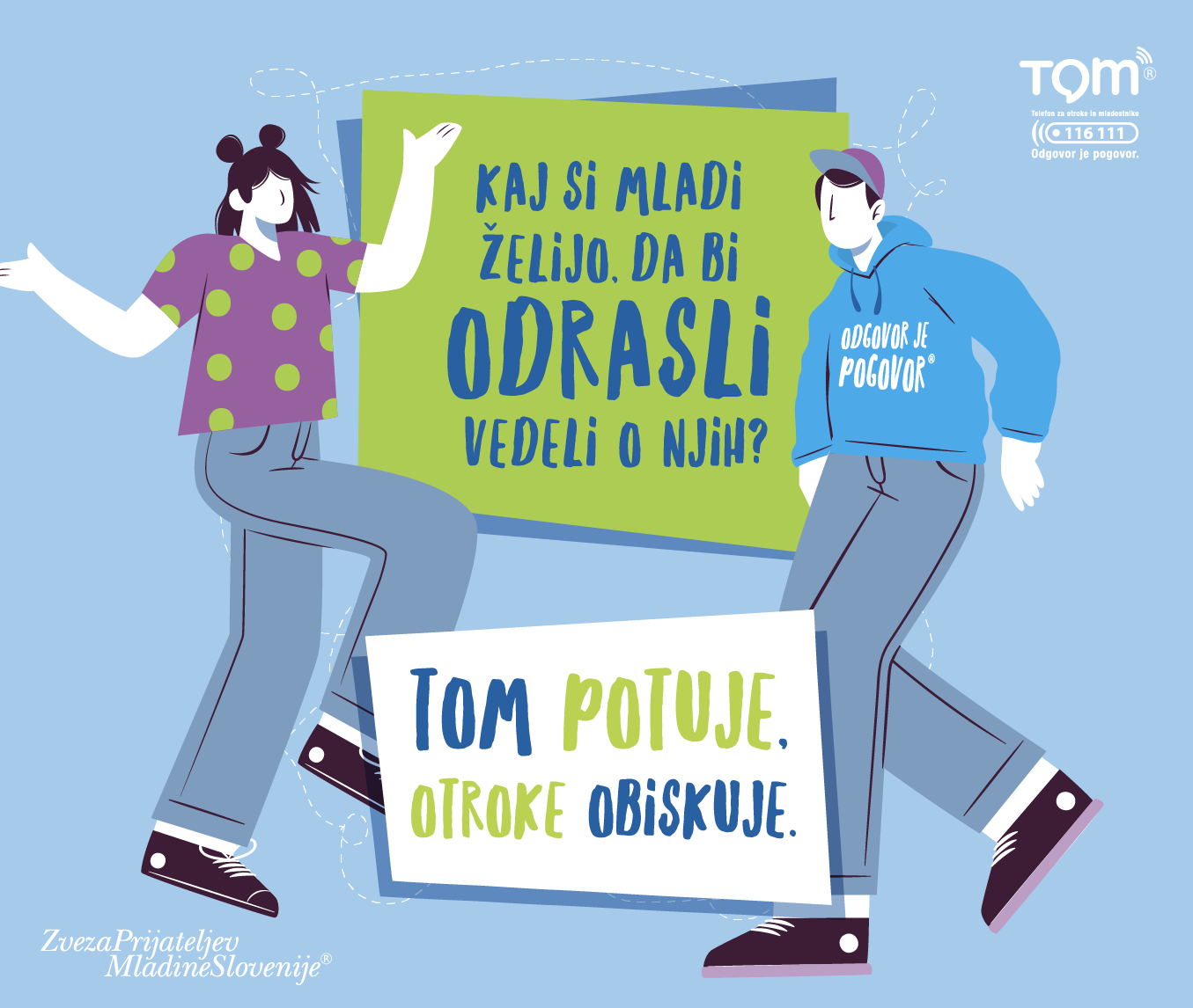 Lansko leto smo kot odziv na posledice epidemije in poslabšanja duševnega zdravja otrok in mladostnikov organizirali vseslovensko akcijo »TOM potuje, otroke obiskuje«. Nahrbtnik TOM telefona je potoval po 12-tih slovenskih regijah in obiskal kar 193 osnovnih šol. Vsaka šola, ki se je vključila, je gostovala nahrbtnik 7 dni in v razredih od 4. do 9. razreda izvedla delavnico o TOM telefonu in pomenu pogovora. Razredniki so na delavnici otroke povprašali tudi o katerih vprašanjih ali temah se ne morejo ali ne upajo pogovoriti s starši ali drugimi odraslimi.