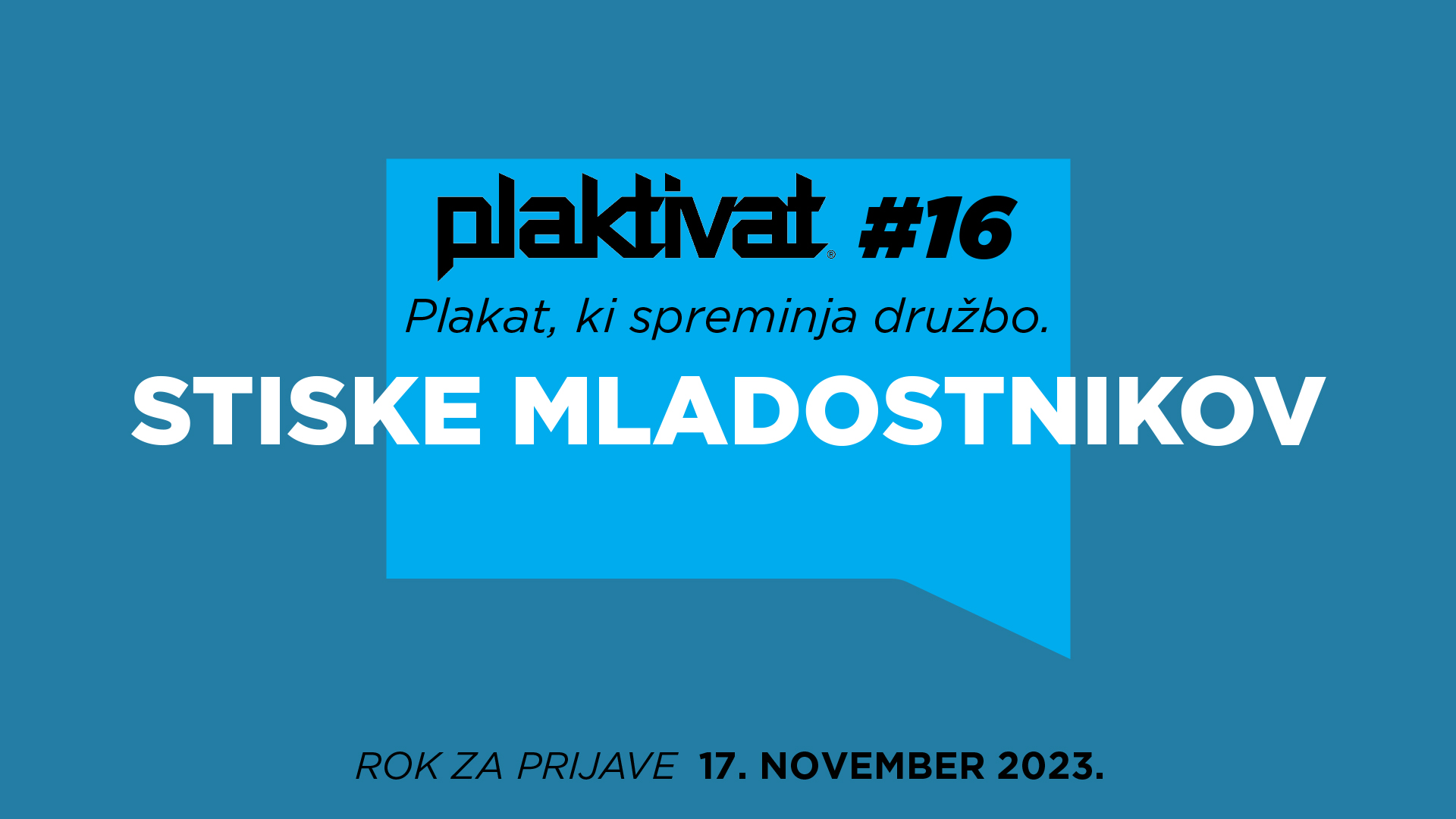 Ljubljana, 17. oktober 2023 – Z današnjim dnem so odprte prijave na 16. Plaktivat – mednarodni natečaj, ki kreativce spodbuja k odzivu na pereče tematike, javnost pa k razmisleku o njih. V tokratni ediciji TAM-TAM Inštitut v sodelovanju z Zvezo prijateljev mladine Slovenija in TOM telefonom izpostavlja stiske mladostnikov. Te so v zadnjih letih vse resnejše in zaskrbljujoče, spremlja pa jih nema tišina, saj podatki razkrivajo, da kar 40 % mladih svojih težav ne zaupa nikomur. V ospredju kreativnega izziva je tako spodbujanje k pogovoru, ki je morda resda najtežji, a izjemno pomemben prvi korak pri reševanju stiske.
