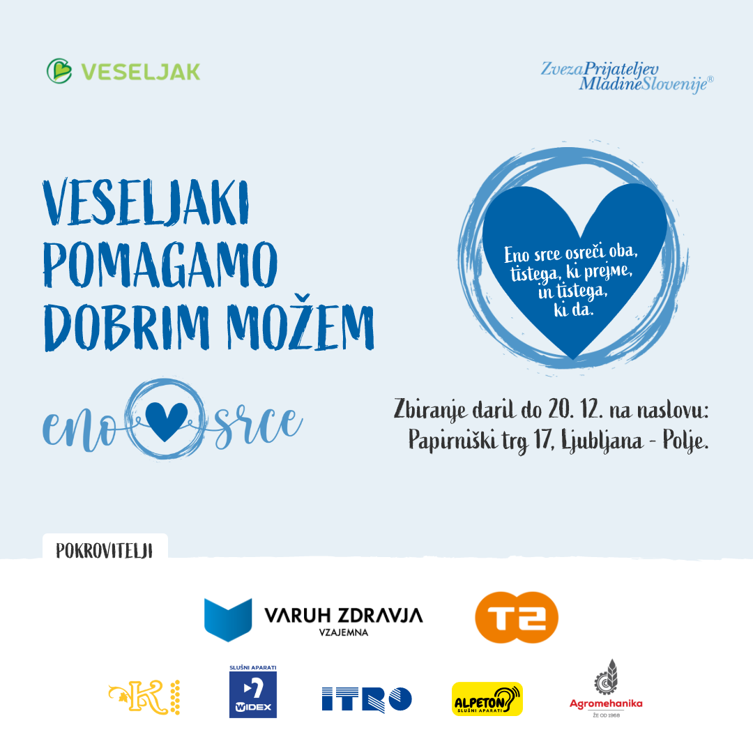 Božično-novoletni prazniki so čas otroškega veselja, peke piškotov, postavljanja smrečice in jaslic, pa tudi obdarovanja. V prazničnih dneh si vsak otrok zasluži dobiti darilo. Veseljak v sodelovanju z Zvezo prijateljev mladine Slovenije, organizira že 8. veliko dobrodelno akcijo zbiranja daril za otroke iz socialno manj prijaznih okolij.