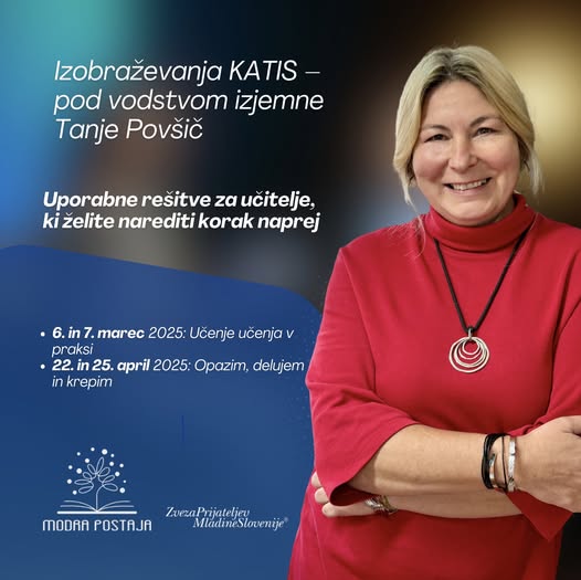 Biti učitelj ni le poklic, ampak poslanstvo. Kako učence naučiti učiti? Kako prepoznati in okrepiti njihov potencial? Na ta vprašanja bomo odgovorili na dveh izjemnih 16-urnih izobraževanjih, ki jih vodi priznana strokovnjakinja Tanja Povšič (vodja programa Modra postaja). S praktičnimi primeri in uporabnimi tehnikami boste osvežili svoje znanje in pridobili nova orodja za delo z učenci.