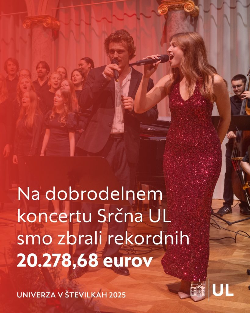 Z velikim ponosom in hvaležnostjo sporočamo, da je na dobrodelnem koncertu Srčna UL tudi letos zablestela moč skupnosti: kar 180 študentk in študentov Univerze v Ljubljani je s svojo energijo, talentom in srčnostjo navdihnilo občinstvo ter skupaj doseglo rekordno zbrani znesek 20.278,68 evra.