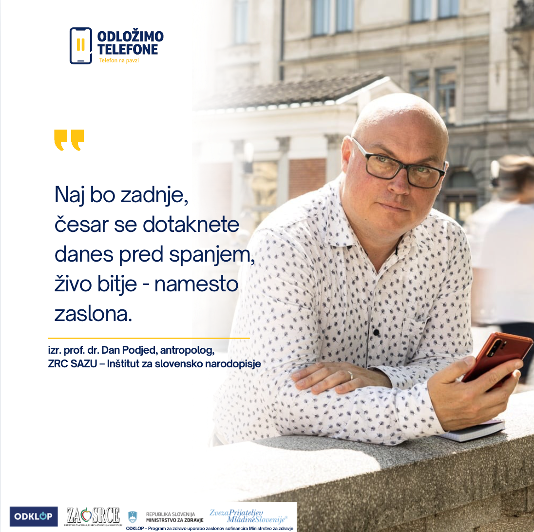 Če se strinjate z našimi prizadevanji in podpirate uvedbo nacionalnega dne uravnotežene rabe zaslonov (20. februar), vas vabimo, da svojo podporo izrazite tudi javno: na spletni povezavi – Odložimo telefone »oddajte« svoj DA tako, da izberete občino, v kateri delujete oziroma bivate. Tako bomo skupaj ustvarili zemljevid podpore in simbolično “obarvali” Slovenijo v enotno, odklopljeno barvo, kot jasen znak, da si skupnosti po vsej državi želijo uravnotežene rabe zaslonov in pozdravljajo premišljene digitalne premore. Naj se obarva cela Slovenija. (anketa traja do 28. februarja)