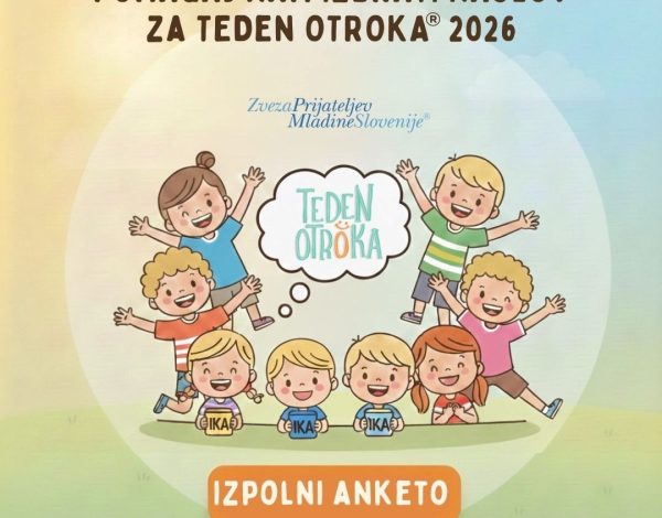 Vabimo vas, da sodelujete pri izboru naslova programa Teden otroka® 2026. Izpolnitev ankete vam bo vzela le 5 sekund, vaš odziv pa prosimo posredujte do 20. februarja 2026.