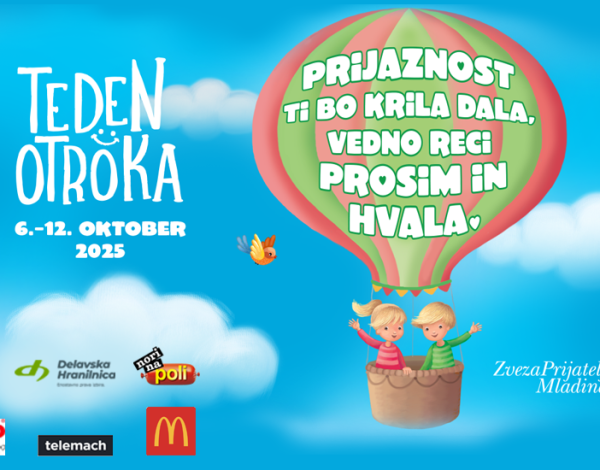 Ljubljana, 6. oktober 2025 – Zveza prijateljev mladine Slovenije (ZPMS) je med 6. in 12. oktobrom 2025 obeležila že 71. Teden otroka®. Osrednja tema letošnjega Tedna otroka je prijaznost, ki jo ZPMS letos predstavlja s sloganom:Prijaznost ti bo krila dala, vedno reci prosim in hvala.