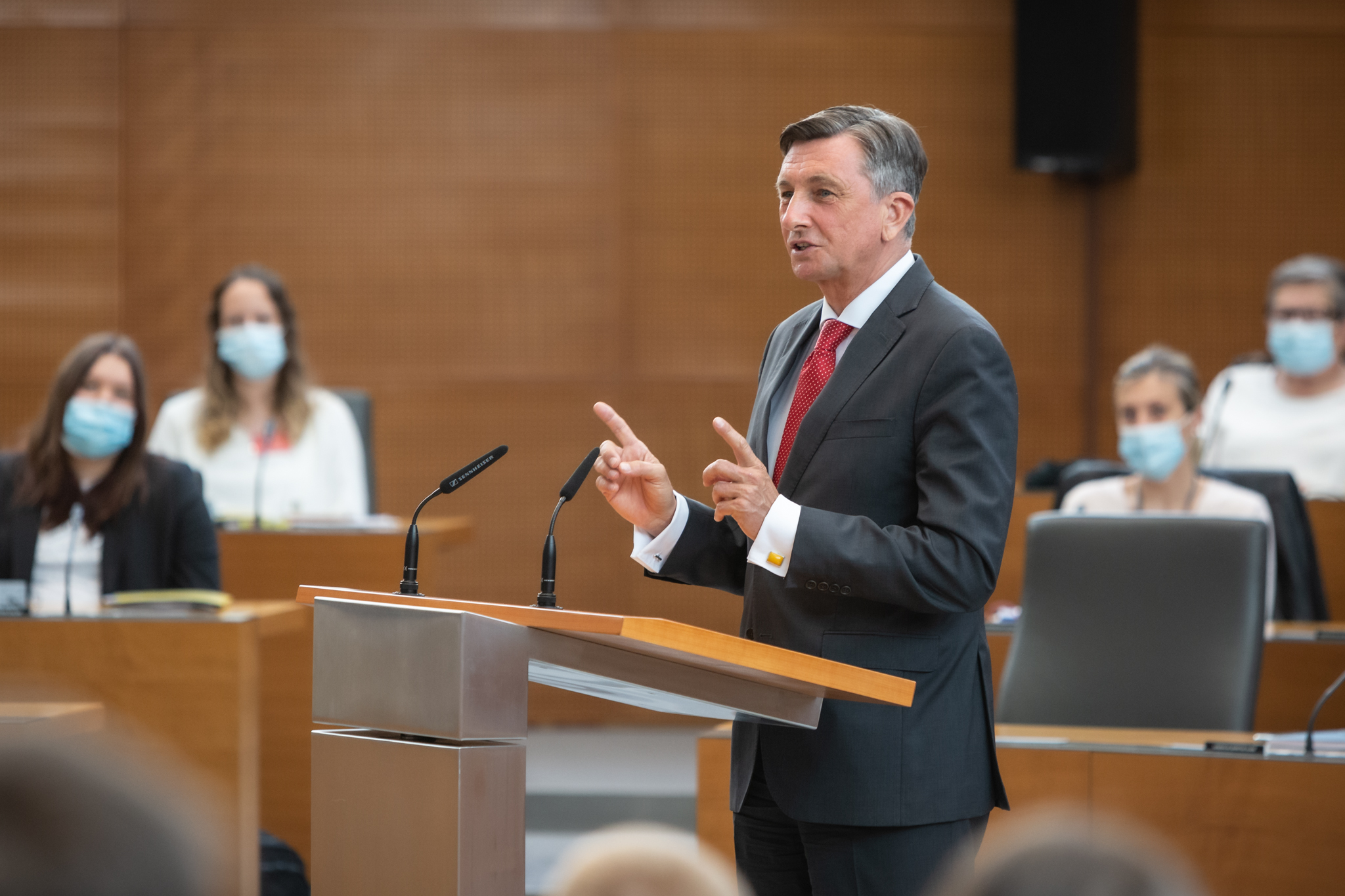 V ponedeljek, 11. aprila, je v veliki dvorani Državnega zbora RS potekalo zasedanje 32. nacionalnega Otroškega parlamenta® (NOP) v okviru Zveze prijateljev mladine Slovenije (ZPMS). 111 mladih parlamentarcev iz vse Slovenije je razpravljalo o osrednji temi Moja poklicna prihodnost oz. petih podtemah: »Moj poklic: skrbi, pričakovanja, znanja in veščine; Poti do mojega poklica; Poklici sedanjosti in poklici prihodnosti; Slovenija, Evropa, svet – pozitivno, negativno, zanimivo; Vpliv covid-19 na izbiro poklica.« Uvodoma jih je pozdravil predsednik Državnega zbora Republike Slovenije g. Igor Zorčič. Spodbudne besede sta mladim parlamentarcem namenila tudi predsednica ZPMS ga. Darja Groznik in predsednik Republike Slovenije g. Borut Pahor.