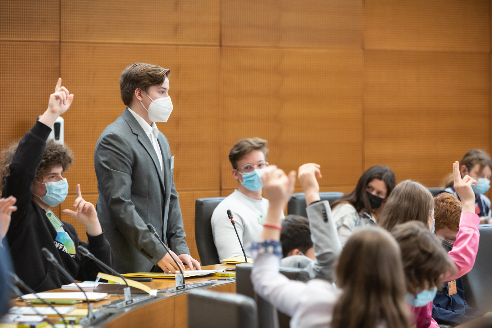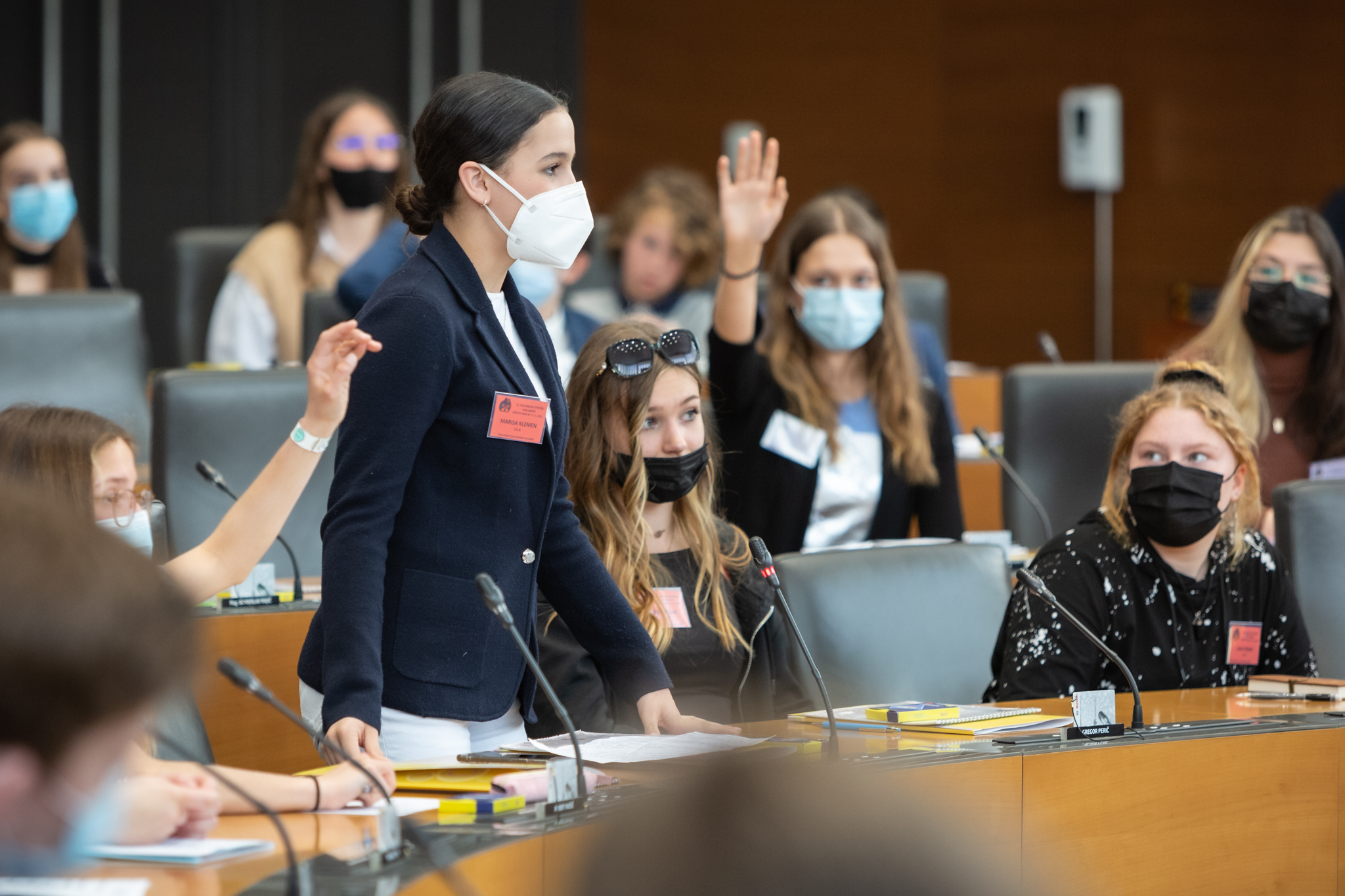 Na drugem delu dogodka so se razpravi oblikovanih predlogov pridružili: Marjan Dikaučič, minister za pravosodje, mag. Franc Vindišar, državni sekretar na Ministrstvu za zdravje, dr. Jože Ruparčič, namestnik Varuha človekovih pravic RS. Razprava med mladimi in gosti je bila zelo zanimiva in konstruktivna, izpostavljamo dva komentarja s področja zdravstva in sodstva – Mag. Franc Vindišar je povedal: »Stanje v družbi je bilo zaradi epidemije zelo zahtevno, otroci in mladostniki ste bili takrat prikrajšani za tisto, kar vam najbolj pritiče – to je šolanje in da se družite. To vam je bilo odvzeto. Procent samomorov med mladimi je bil visok. Odločitev, da se takoj pristopi na pomoč pri duševnem zdravju, je bila edina pravilna. Uspeli smo zagotoviti takojšnjo pomoč s Centri za duševno zdravje. Prepričan sem, da so centri, ki so razpršeni po celi državi, dobra odločitev. Kajti duševno zdravje je vsaj tako pomembno, če ne celo še bolj pomembno, kot so fizične poškodbe. Pomembne so preventivne akcije, s katerimi lahko preprečimo najhujše diagnoze. Slovenija s svojim zdravstvenim sistemom skrbi za otroke posebej. Mreža šolskih dispanzerjev je nekaj, kar ni povsod po svetu. To je ena od zelo dobrih stvari, ki jih v Sloveniji imamo.« Marjan Dikaučič, minister za pravosodje: »Da bi bilo pravosodje prijazno otrokom, smo na Ministrstvu za pravosodje ravno v zaključni fazi ustanovitve Hiše za otroke po modelu Barnahus (sicer za mlajše otroke). Tu se bodo otroci lahko skozi igro izpovedali. Hiša za otroke bo prijazen prostor, čisto drugačen od stroge sodne dvorane.«