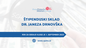 Ustanova Fundacija ZPMS za otroke in družine v Sloveniji razpisuje 5 mest za štipendije iz Štipendijskega sklada dr. Janeza Drnovška...