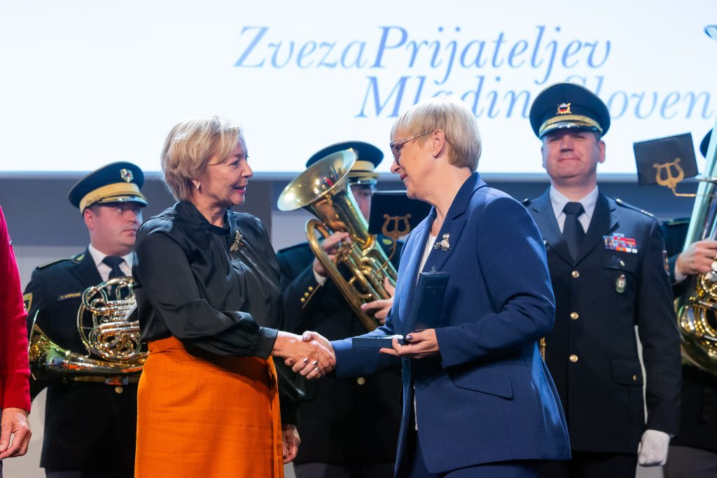 V nadaljevanju je predsednica RS dr. Nataša Pirc Musar TOM telefonu® podelila medaljo za zasluge. Odlikovanje sta prevzela Darja Groznik, predsednica Zveze prijateljev mladine Slovenije, in Nace Breitenberger, dolgoletni svetovalec TOM telefona®.