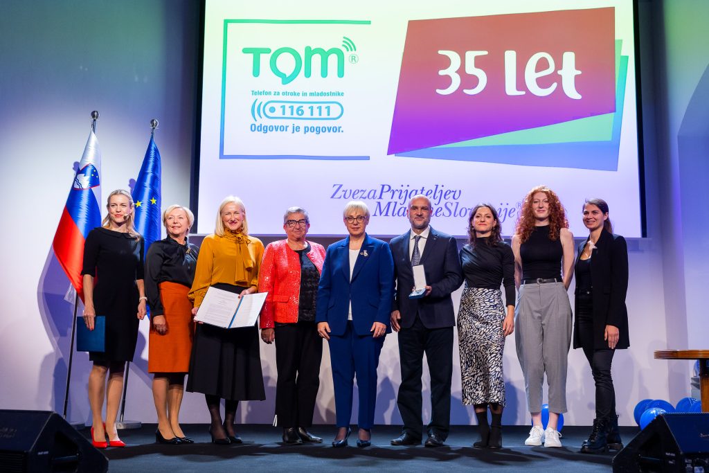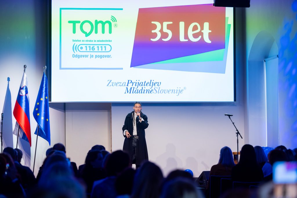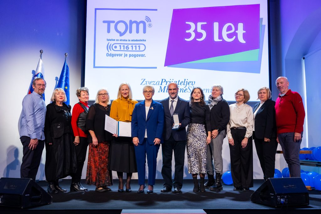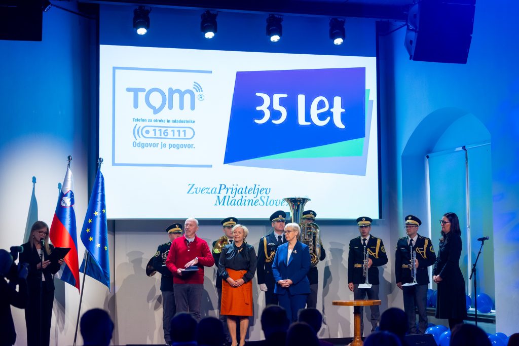 Tom telefon® je danes, 20. novembra, pripravil osrednji dogodek ob 35-letnici delovanja. Tom telefon®, ki je pred 35 leti nastal na pobudo mladih samih, je postal nepogrešljiv del podpornega okolja za otroke in mladostnike v Sloveniji ter osrednji prostor, kjer je “odgovor pogovor”. Slavnostni dogodek je potekal v duhu spoštovanja do vseh, ki v teh desetletjih gradijo TOM telefon®: prostovoljcev svetovalcev, strokovnih sodelavcev, partnerjev, donatorjev, financerjev in številnih sorodnih organizacij. Osrednji del dogodka je bilo slavnostno vročilo odlikovanja – medalje za zasluge, v nadaljevanju pa tudi okrogla miza z gosti: Ljupka Vrteva, Masayah, Martin Golob in Gregor Kosi.