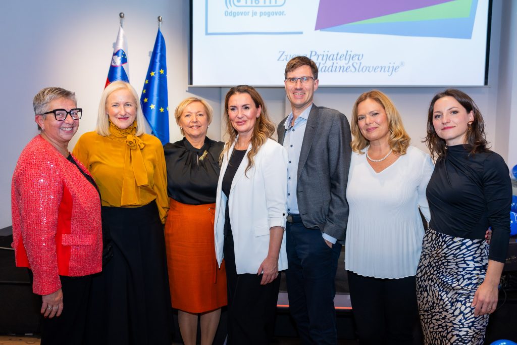 Tjaša Bertoncelj, strokovna vodja NM Tom telefona® je uvodoma izpostavila: Kako ponosni smo lahko na dejstvo, da od prvega klica naprej TOM telefon odgovorno in strokovno izpolnjuje to zavezo otrokom. Je zaupen, varen, neobsojajoč, brezplačen in anonimen telefon, kjer mladi lahko podelijo kolikor želijo in zmorejo. Svetovalci ne dajejo nasvetov, ampak otroku pomagajo, da se premakne s položaja nemoči, brezupa in zmedenosti na točko, kjer se začne umirjati in črpati iz lastnih virov. Otroci ob tem pridobijo pomembno izkušnjo, da so slišani, da pogovor lahko pomaga in da so sami sposobni poiskati pomoč. Pomembna pa je tudi dobra izkušnjo stika oz. odnosa z osebo, na katero so se obrnili po pomoč. /…/ Osrednja vloga TOMa je zagotavljanje kakovostnega svetovanja. Nič manj pomembna pa ni statistična analiza vseh prejetih kontaktov, ker nam to omogoča aktivno spremljanje trendov med otroki in mladostniki. Lahko trdim, da ima TOM telefon najbolj aktualen vpogled v stanje med otroki in mladostniki, ki temelji na okoli 28.000 prejetih kontaktih letno. V prvi polovici leta 2025 smo obdelali 14.892 kontaktov, kar je 5,6 % rast v primerjavi z lanskim letom in najvišja številka v zadnjih petih letih. Analiza vsebine kontaktov je neprecenljiva informacija, ki je lahko verodostojna podlaga za uvajanje politik in ukrepov, ki otroke podpirajo na učinkovit in strokovne način. Zato je danes, bolj kot kadarkoli prej nujno, da podpiramo TOM Telefon – ne le kot brezplačen telefon, ampak kot temeljno družbeno mrežo varnosti. Potrebujemo stabilno podporo države, partnerstva s strokovnimi institucijami, dodatne vire za usposabljanje prostovoljcev in profesionalizacijo tam, kjer je to potrebno. TOM je torej prostor, ki ga sestavlja mnogo delcev. Vsi otroci, ki so kdorkoli poklicali na TOM, vsi prostovoljci, strokovni delavci, vodje skupin, vodstvo zveze, vsi financerji, donatorji, mediji, oblikovalci, vse sodelujoče organizacije, vsi kolegi, ter vse druge osebe, ki TOM podpirajo, pa mogoče za njih sploh ne vemo … Mnogi od teh delcev, ki gradijo TOM, pa danes sedite tukaj z nami. S to slavnostno prireditvijo smo se vam želeli zahvaliti in sporočiti, da vas cenimo.«