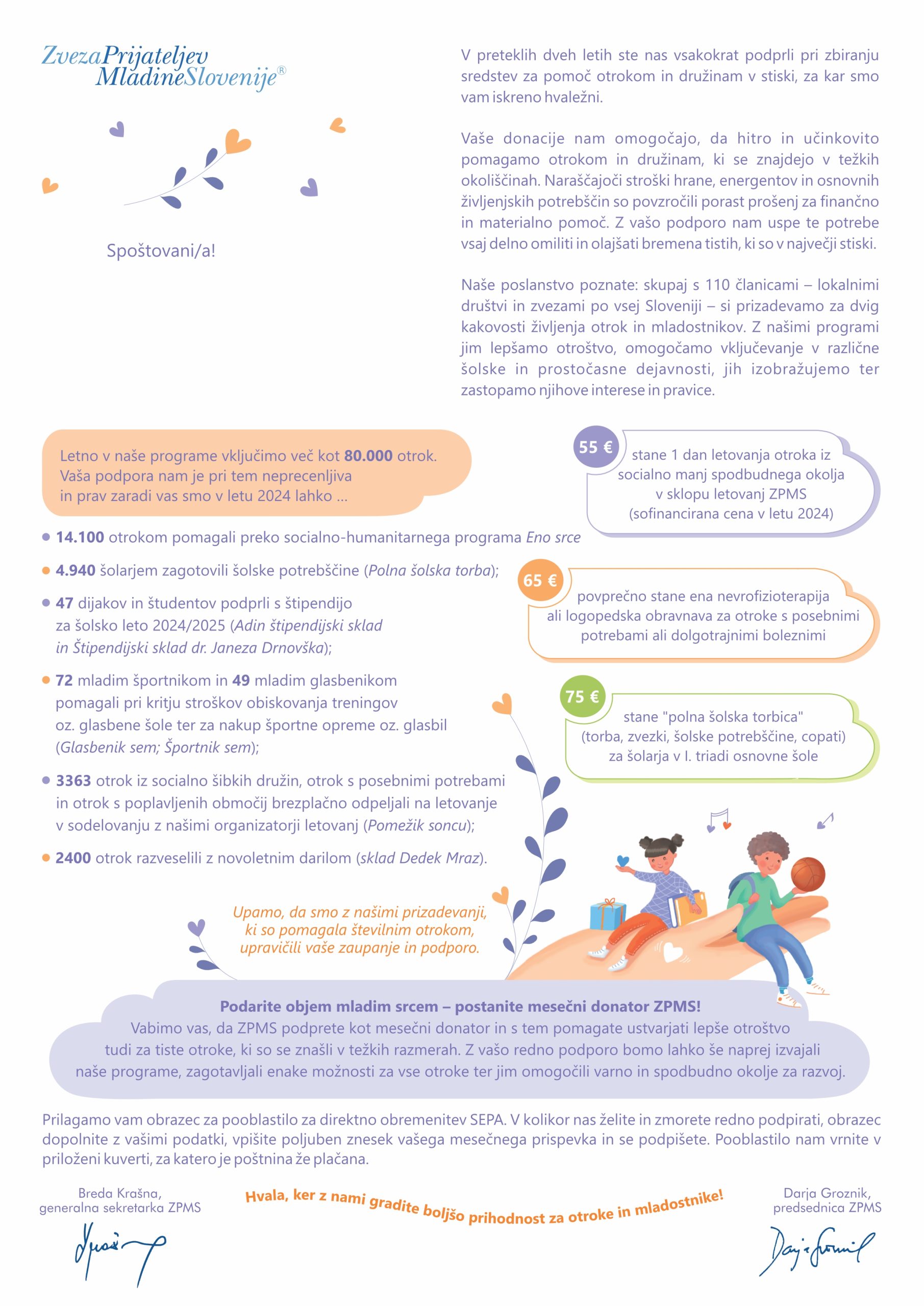 S poslanim SMS sporočilom ZPMSNA5 na številko 3113 postanete mesečni donator!